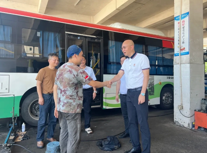 7月3日,吉安公司董事長(zhǎng)高煌深入公司修理廠進(jìn)行指導(dǎo)檢查,同時(shí)慰問高溫下奮戰(zhàn)在一線的干部職工。吉安公交副總